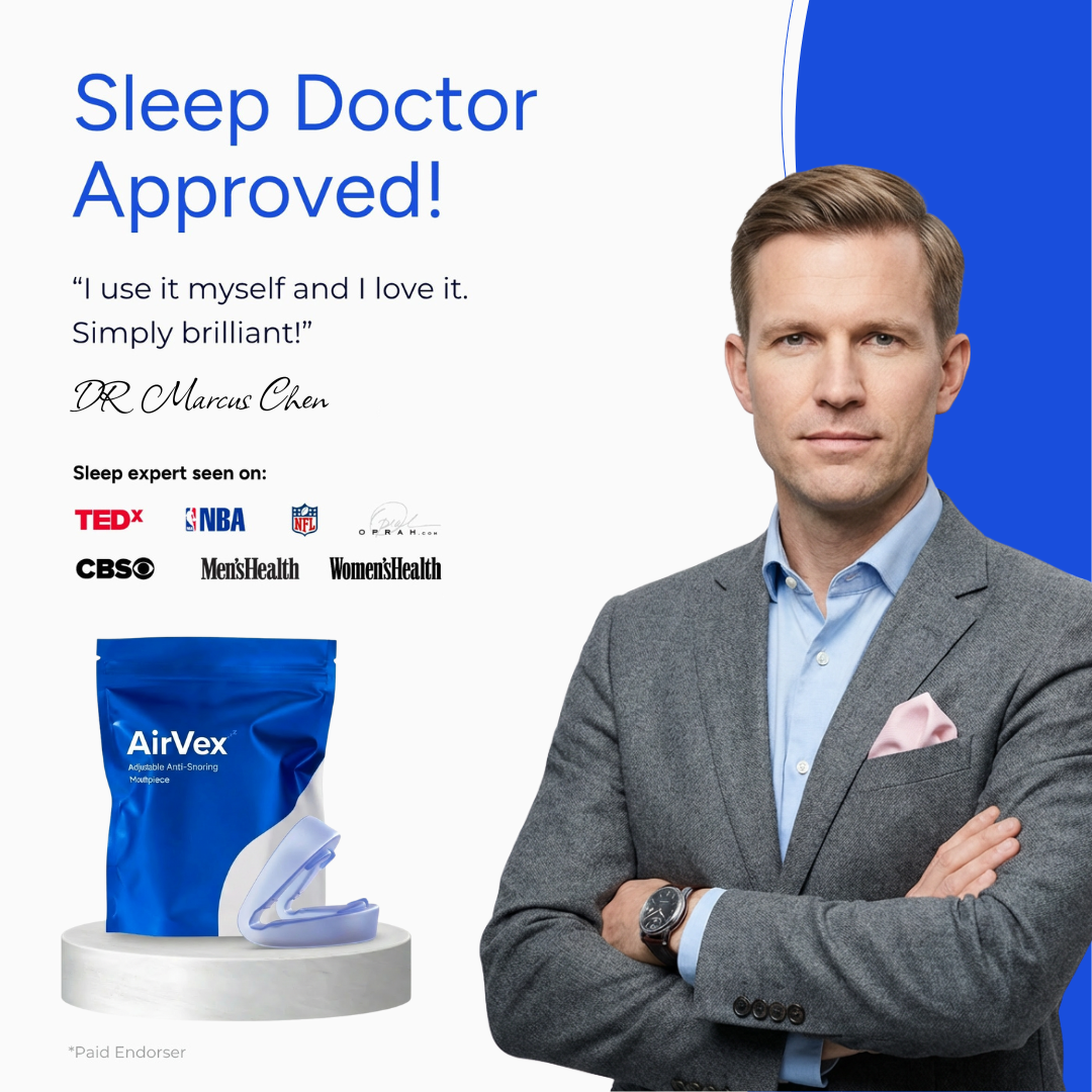 Because it targets what others miss. Strips target your nose. Pillows shift your head. CPAP forces air through. None fix the actual blockage — your jaw falling backward and collapsing your airway. AirVex Pro holds your jaw forward, keeping your airway open at the source.
